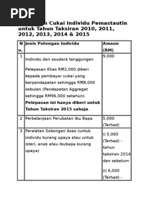 Pelepasan Cukai Individu Pemastautin Untuk Tahun Taksiran 2010 Pdf